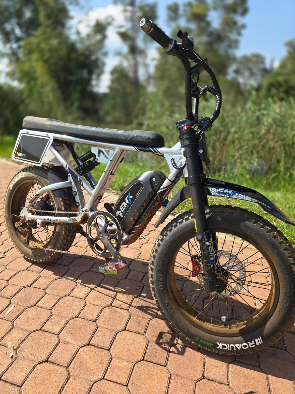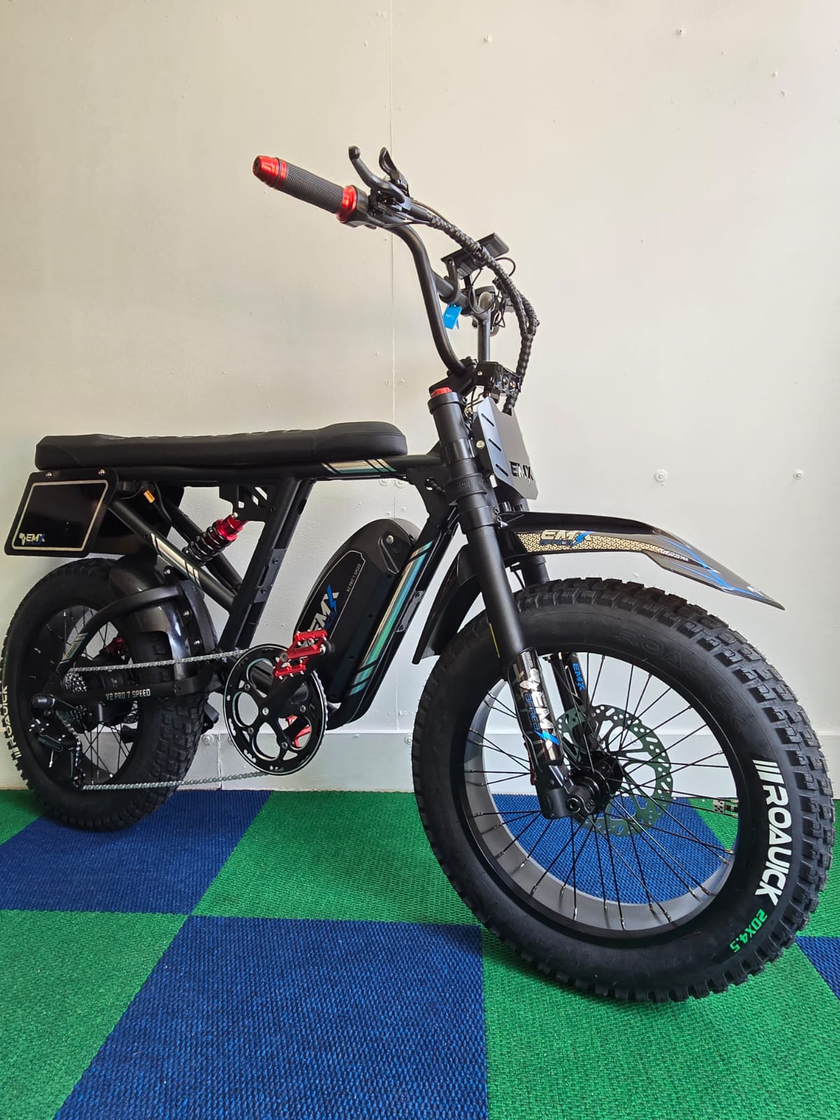 Comfort is enhanced through an inverted cartridge front fork, which helps absorb bumps and uneven surfaces, creating a relaxed and controlled ride. The wide 20-inch fat tyres add stability and grip, making this cruiser feel planted and confident on urban roads. Hydraulic oil brakes ensure dependable stopping power, even in stop-start traffic.